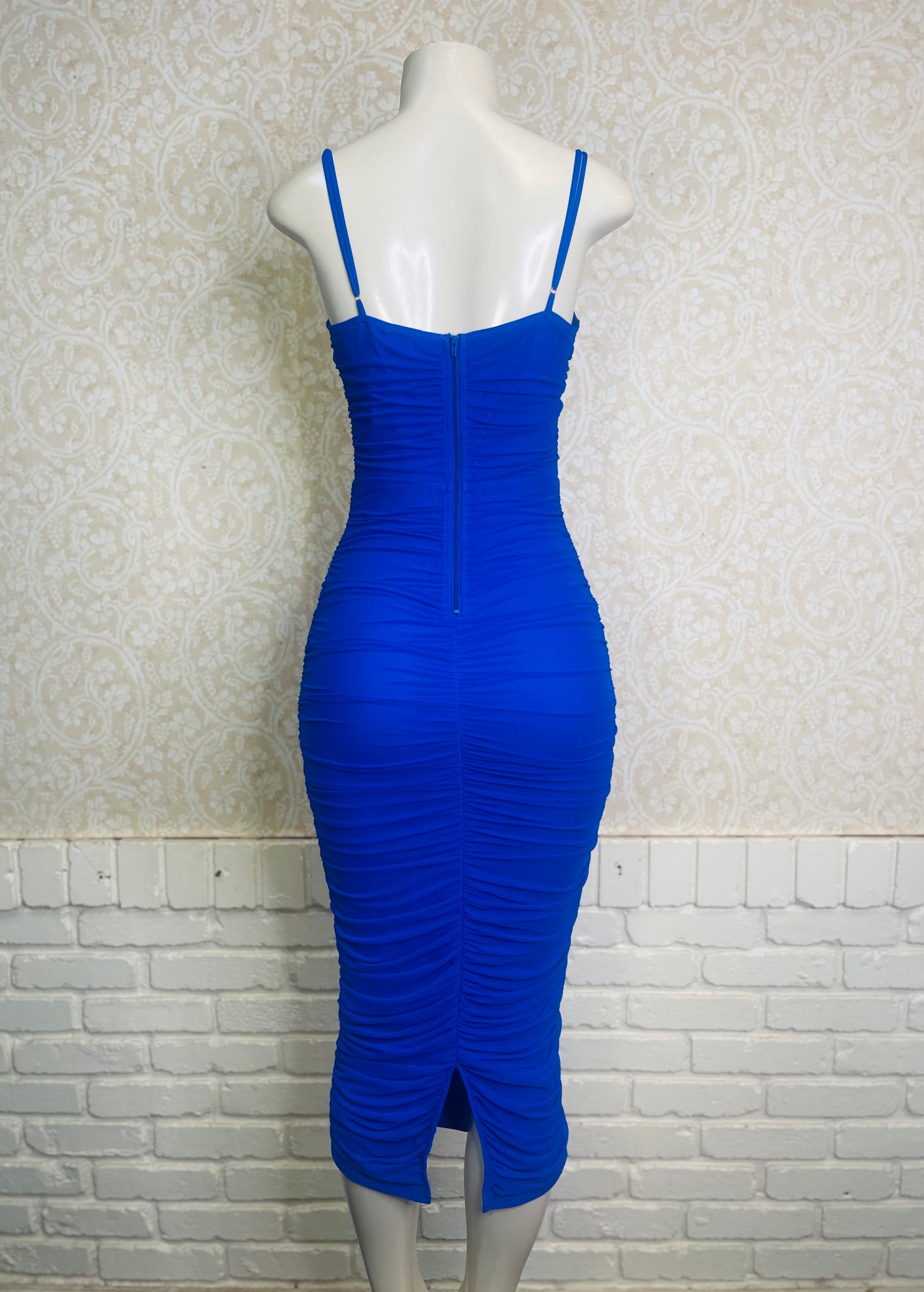 Turn heads effortlessly in this Royal Blue Corset Midi Dress featuring ruched sides that hug your curves in all the right places. The corset design adds a flirty, structured touch while the midi length keeps it chic and versatile. Perfect for nights out or special occasions when you want to feel confident and playful.