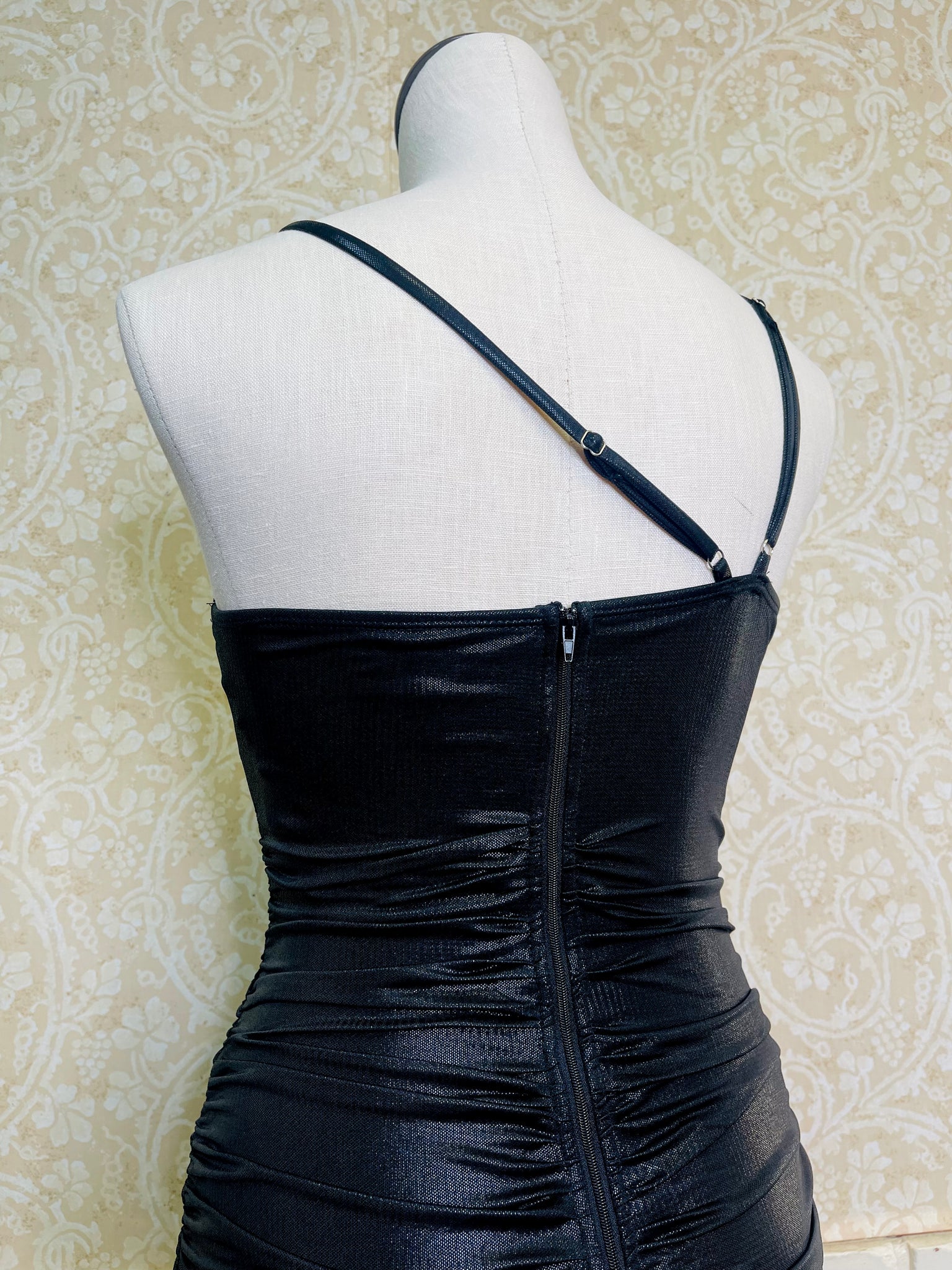 Shine and switch it up with this Black Foil Shiny Dress! Its versatile straps let you wear it two fun ways, so you can mix and match your style all night long. Perfect for adding a playful twist to your party look!